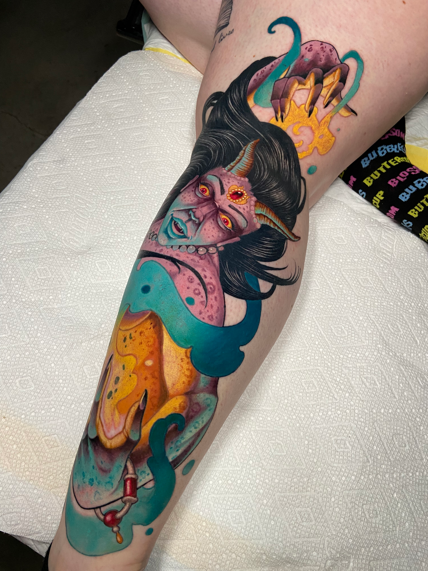 Jon absolutely blows me away with his talent and attention to detail. I expected an amazing tattoo going into my appointment, just based on his portfolio. What I didn’t expect was how kind and down to earth Jon is. He was understanding when I needed a break, was very encouraging through the entire process, and overall an absolute delight to work with. I am thrilled with the outcome of my piece and don’t hate when people stop me in the store to talk about it (which they do. Often.) I’m so happy to have this on my body for the rest of my life. Thank you, Jon!